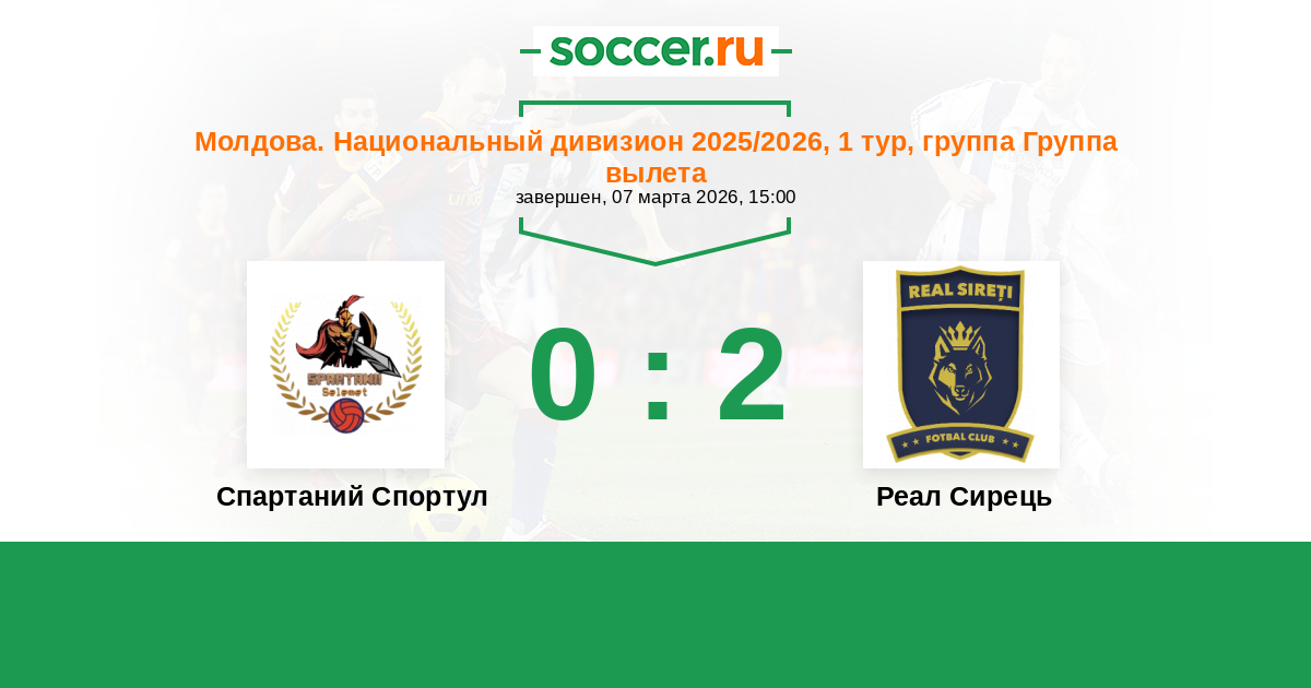 Матч Спартаний Спортул против Реал Сирець
