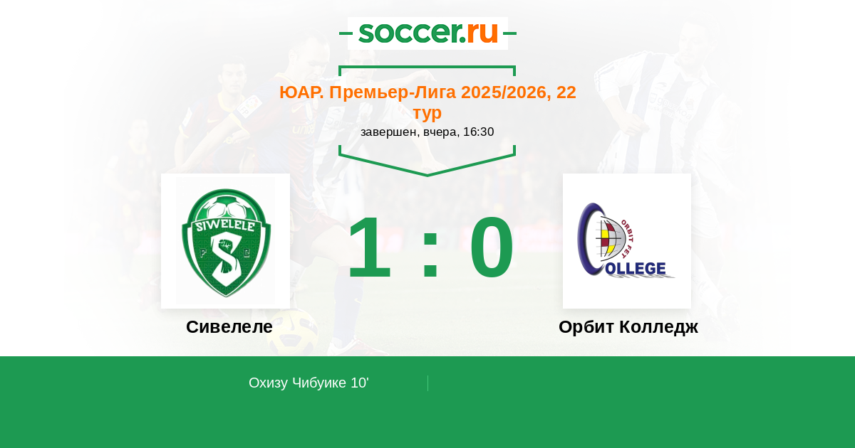 Протокол матча Сивелеле против Орбит Колледж