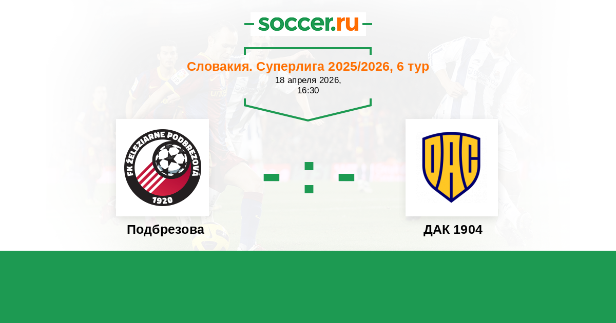 Словакия. Суперлига 05.05.2024 Подбрезова Логотип футбольный клуб Подбрезова 0:3 Логотип футбольный клуб ДАК 1904 (Дунайська Стреда) ДАК 1904