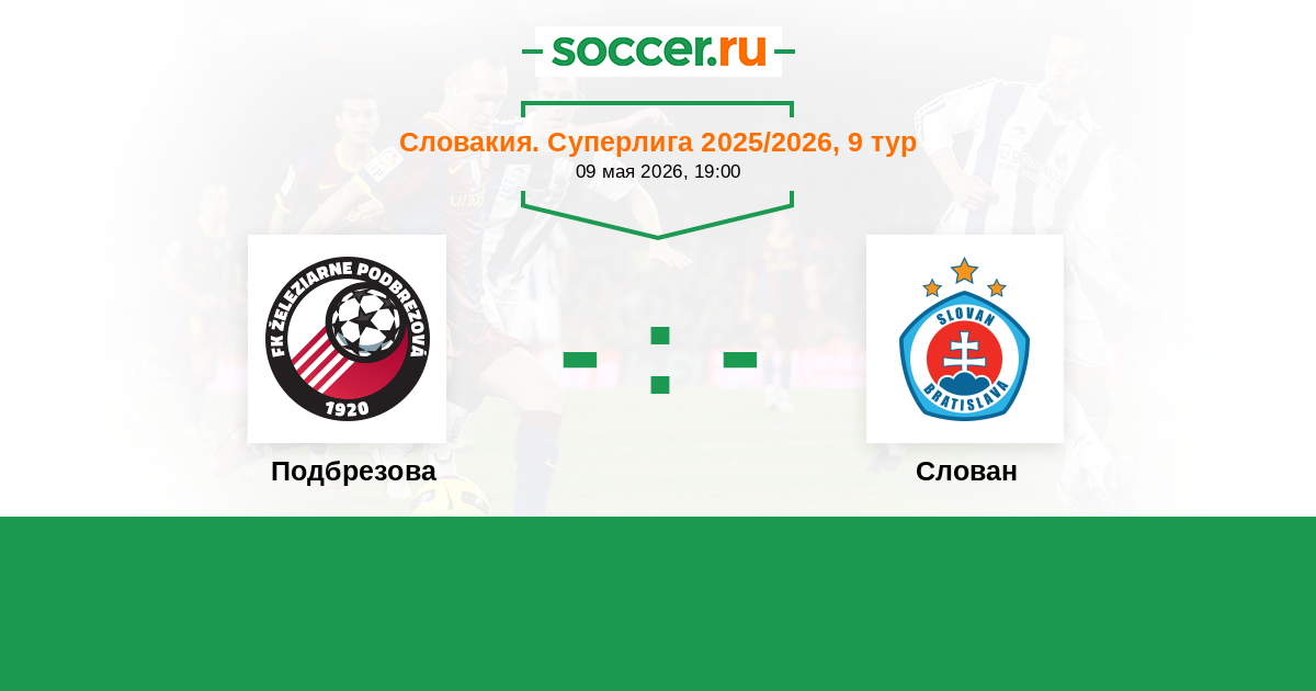Словакия. Суперлига 01.11.2025 Подбрезова Логотип футбольный клуб Подбрезова 1:3 Логотип футбольный клуб Слован (Братислава) Слован