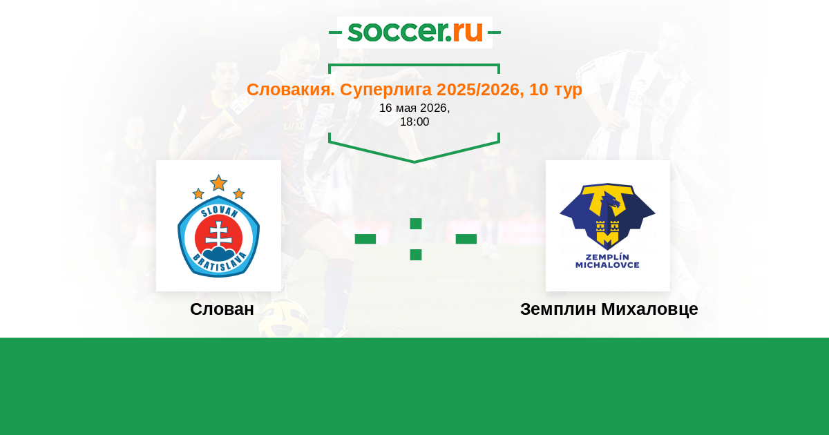 Словакия. Суперлига 01.10.2016 Слован Логотип футбольный клуб Слован (Братислава) 3:1 Логотип футбольный клуб Земплин Михаловце Земплин Михаловце