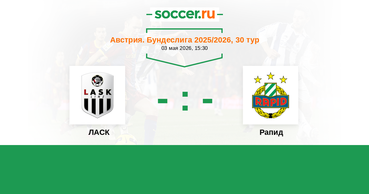Австрия. Бундеслига 30.11.2025 ЛАСК Логотип футбольный клуб ЛАСК (Линц) 3:0 Логотип футбольный клуб Рапид (Вена) Рапид