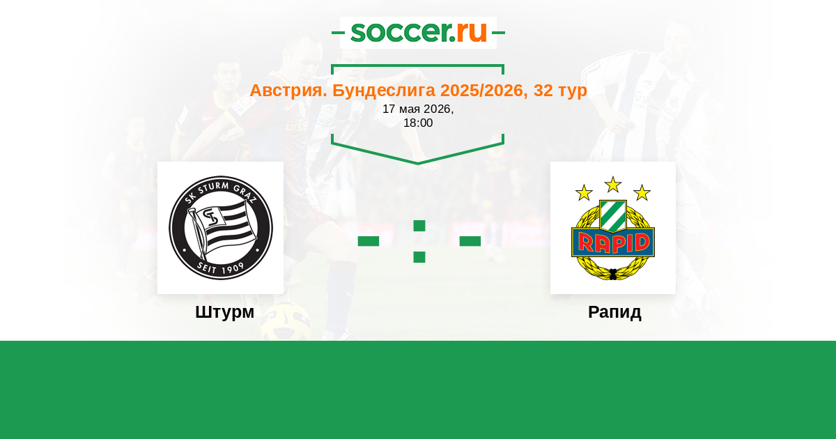 Австрия. Бундеслига 18.05.2025 Рапид Логотип футбольный клуб Рапид (Вена) 3:1 Логотип футбольный клуб Штурм (Грац) Штурм