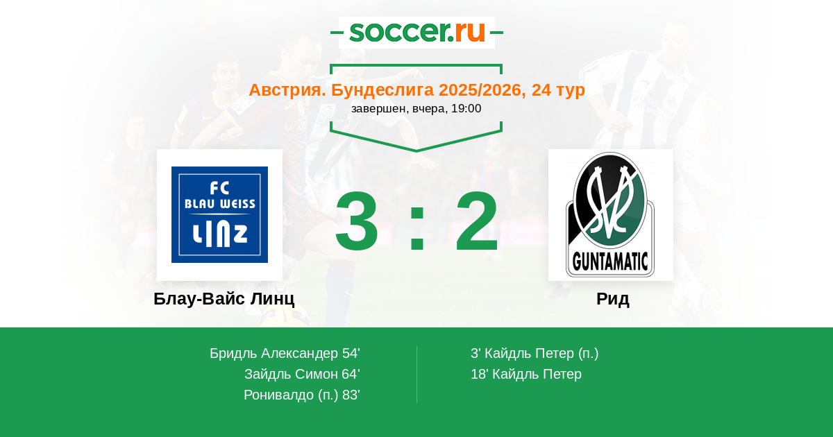 Протокол матча Блау-Вайс Линц против Рид