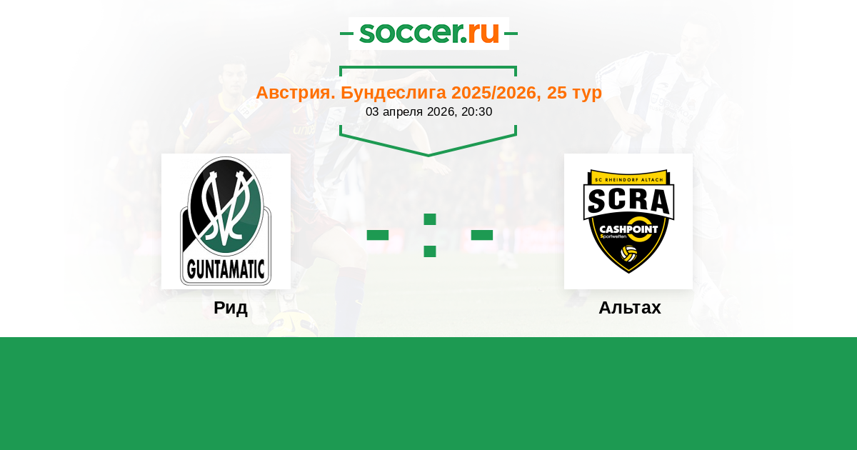 Австрия. Бундеслига 17.04.2021 Рид Логотип футбольный клуб Рид 0:0 Логотип футбольный клуб Альтах Альтах
