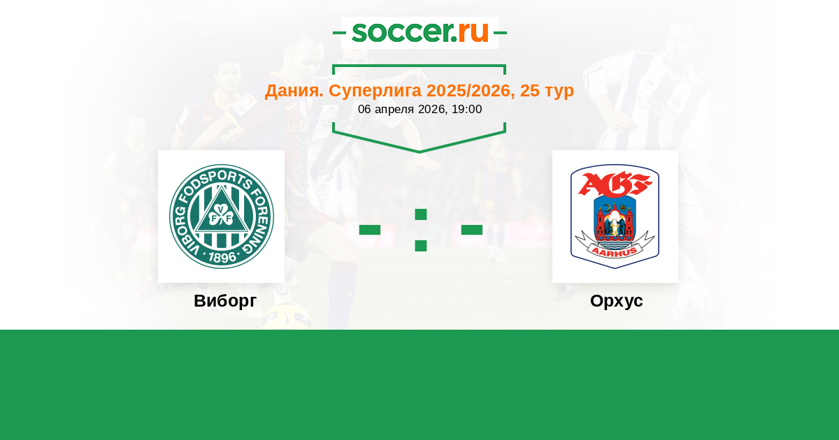 Дания. Суперлига 06.10.2024 Виборг Логотип футбольный клуб Виборг 1:1 Логотип футбольный клуб Орхус Орхус