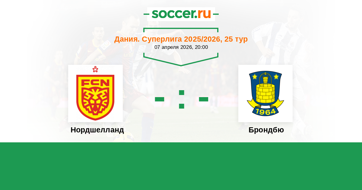 Дания. Суперлига 18.04.2025 Брондбю Логотип футбольный клуб Брондбю (Брённбю) 0:0 Логотип футбольный клуб Нордшелланд (Фарум) Нордшелланд