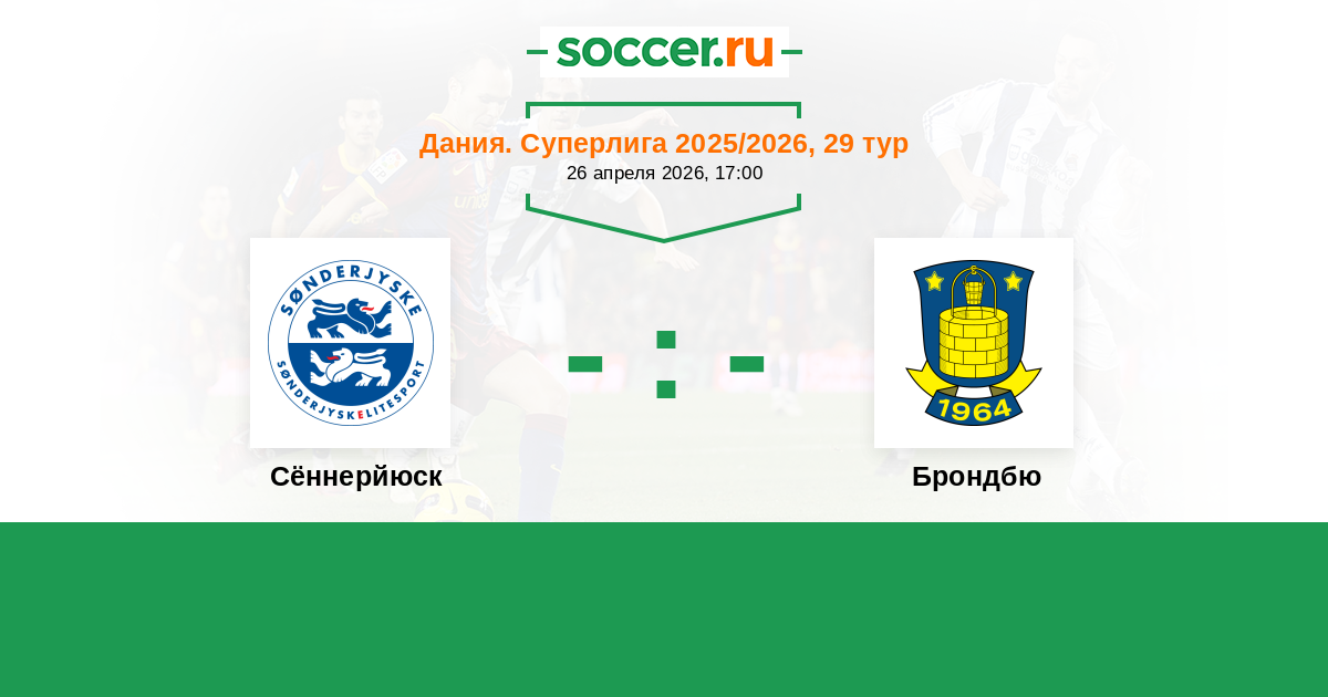 Дания. Суперлига 25.11.2018 Сённерйюск Логотип футбольный клуб Сённерйюск (Хадерслев) 0:2 Логотип футбольный клуб Брондбю (Брённбю) Брондбю