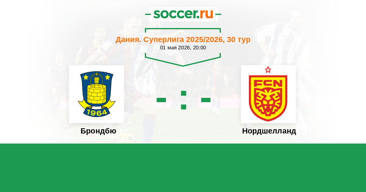Дания. Суперлига 09.11.2025 Брондбю Логотип футбольный клуб Брондбю (Брённбю) 2:0 Логотип футбольный клуб Нордшелланд (Фарум) Нордшелланд