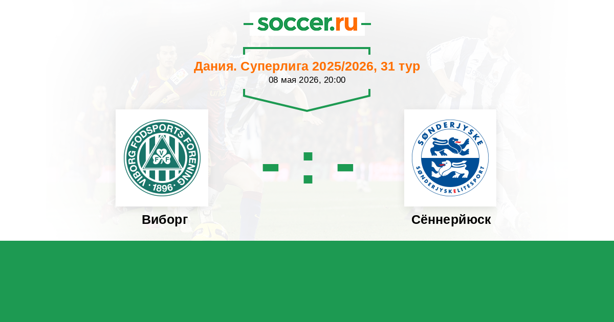 Дания. Суперлига 06.04.2025 Виборг Логотип футбольный клуб Виборг 2:1 Логотип футбольный клуб Сённерйюск (Хадерслев) Сённерйюск