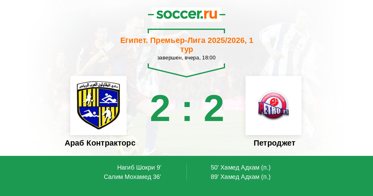 Протокол матча Араб Контракторс против Петроджет