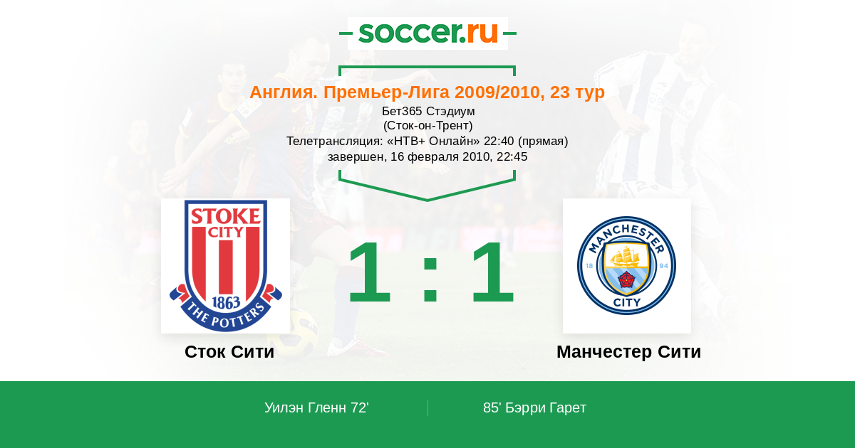 Протокол матча Сток Сити против Манчестер Сити
