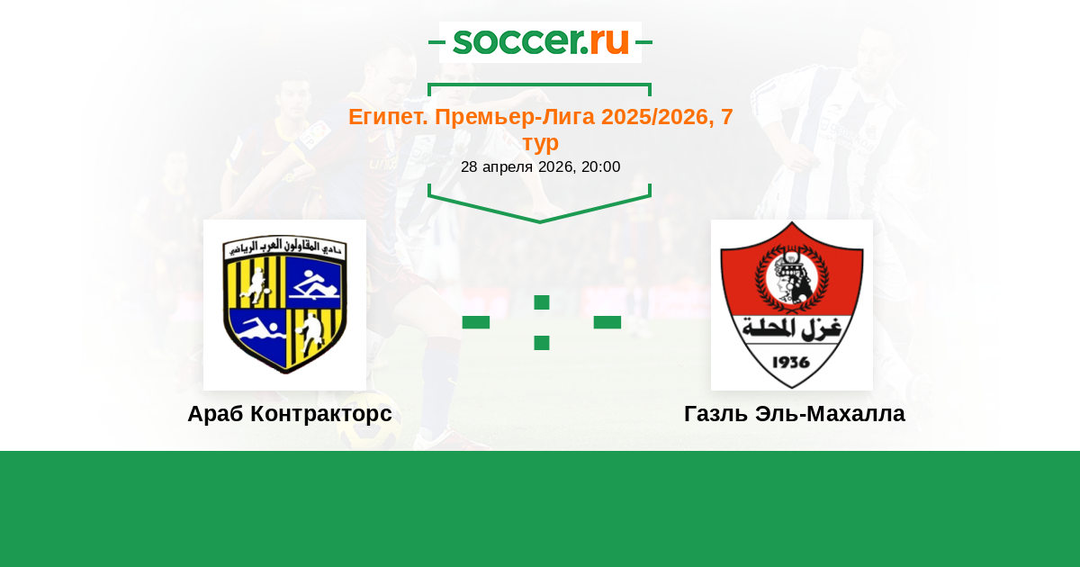 Египет. Премьер-Лига 25.08.2021 Газль Эль-Махалла Логотип футбольный клуб Газль Эль-Махалла 1:2 Логотип футбольный клуб Араб Контракторс (Каир) Араб Контракторс