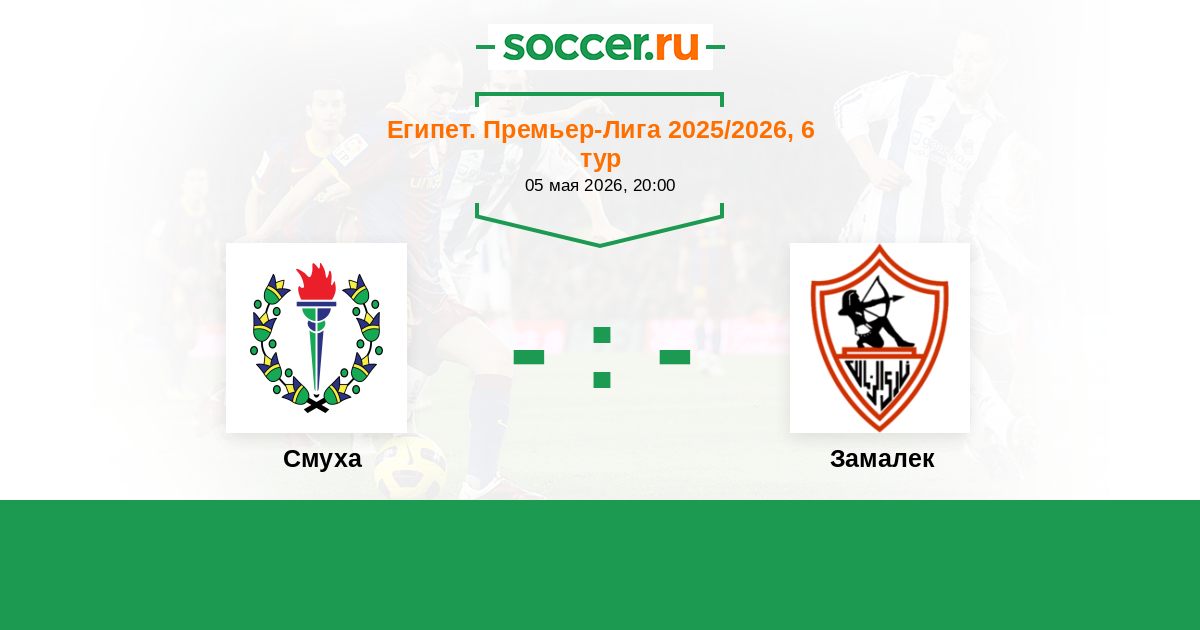 Египет. Премьер-Лига 05.05.2024 Смуха Логотип футбольный клуб Смуха (Александрия) 1:0 Логотип футбольный клуб Замалек (Каир) Замалек