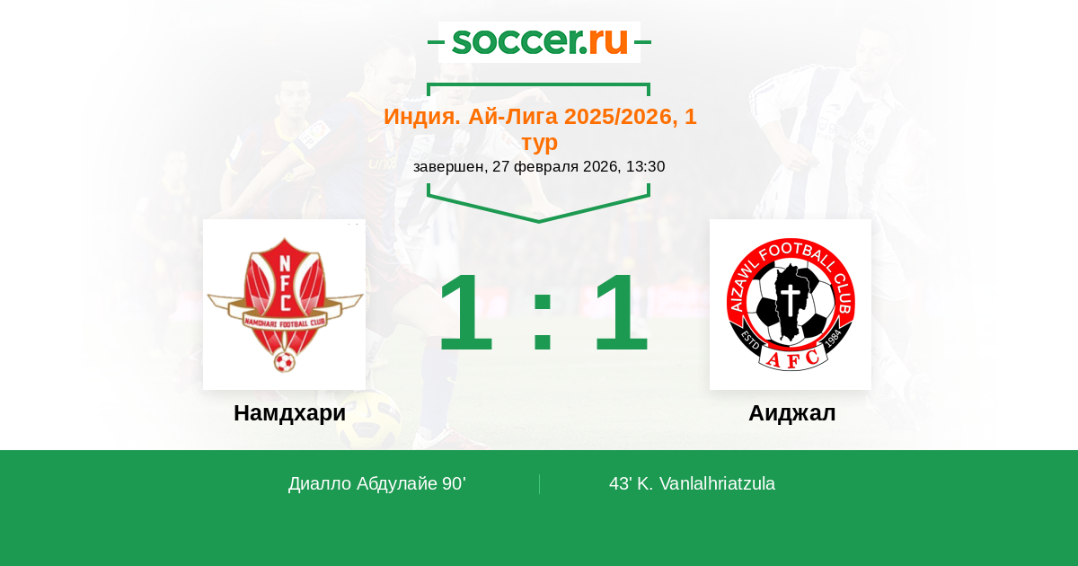 Протокол матча Намдхари против Аиджал
