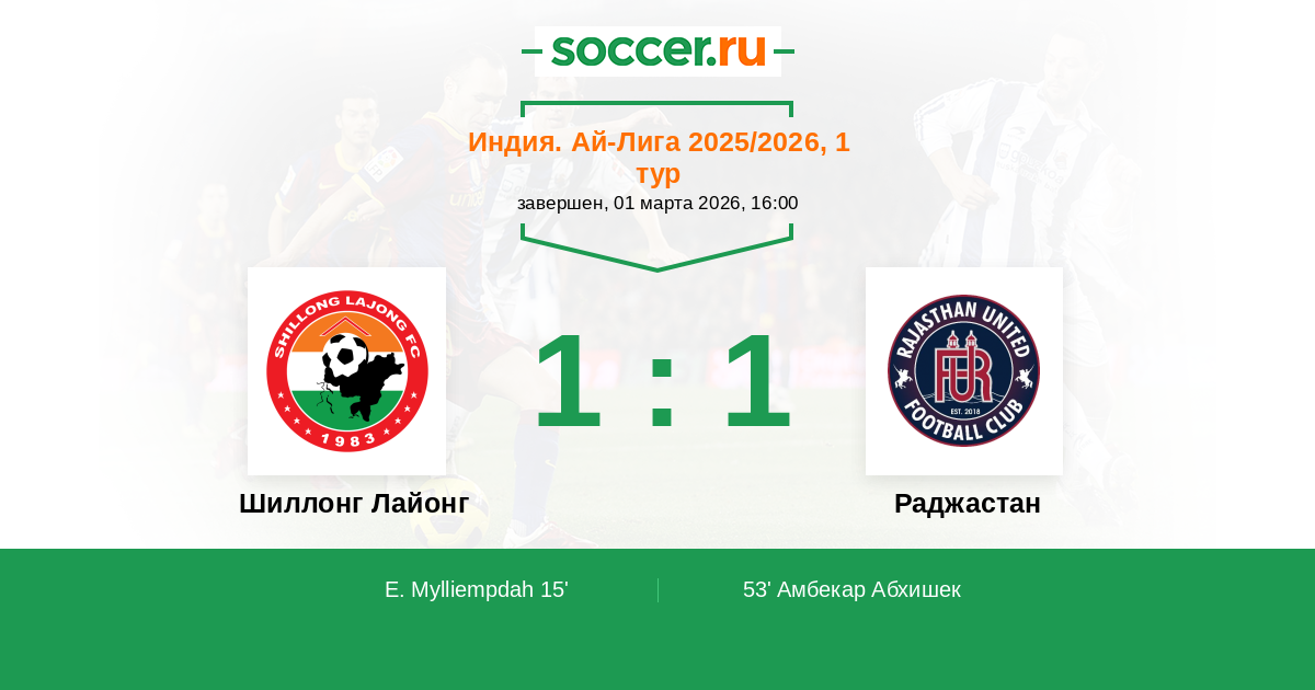 Протокол матча Шиллонг Лайонг против Раджастан