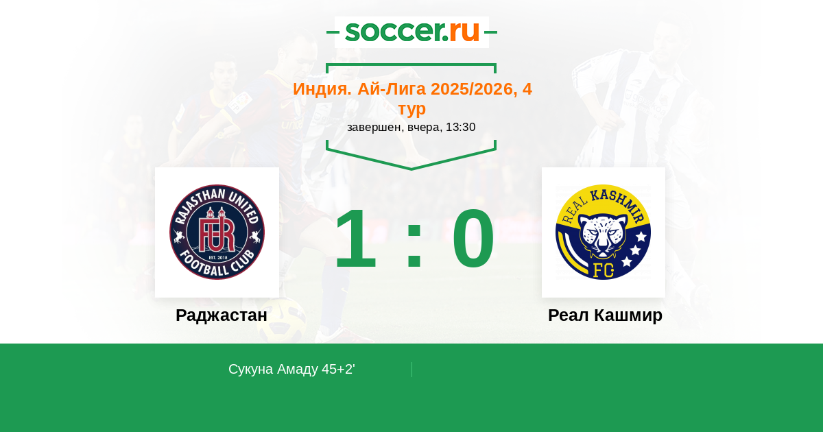 Протокол матча Раджастан против Реал Кашмир