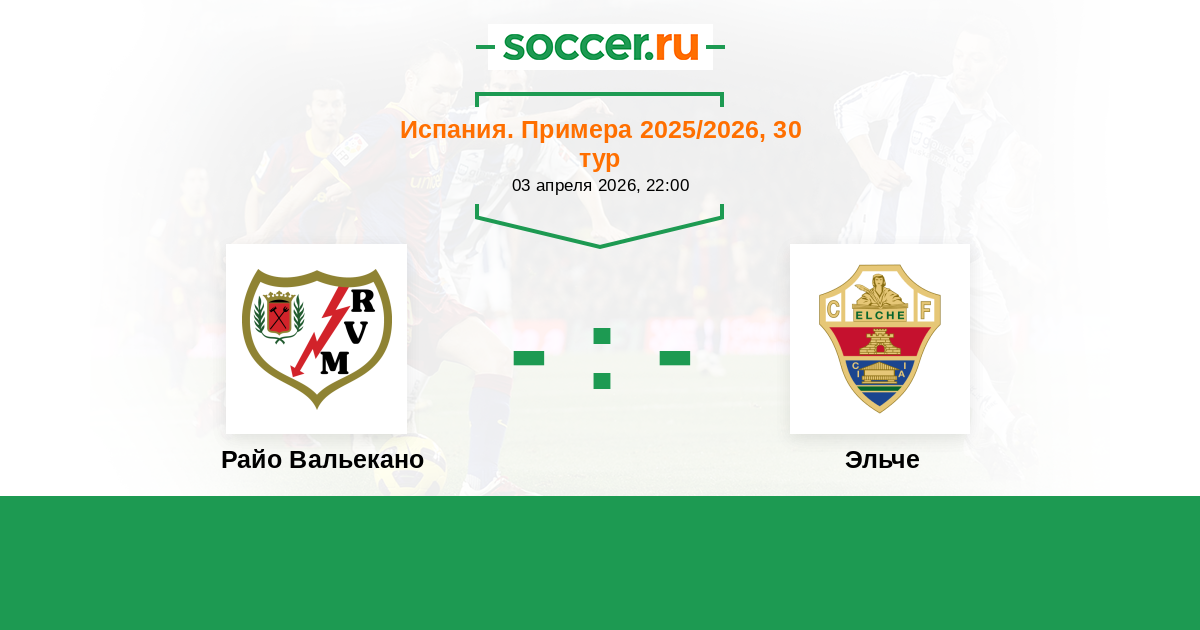 Испания. Примера 21.12.2025 Эльче Логотип футбольный клуб Эльче 4:0 Логотип футбольный клуб Райо Вальекано (Мадрид) Райо Вальекано