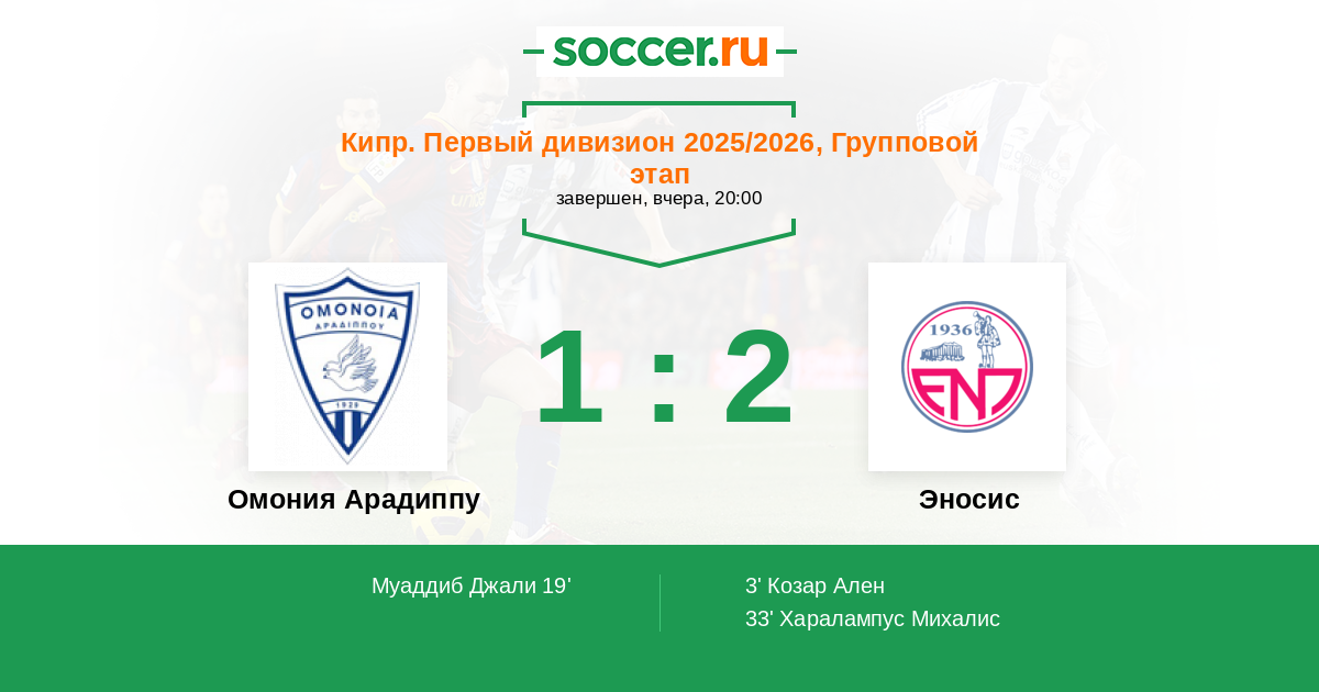 Протокол матча Омония Арадиппу против Эносис