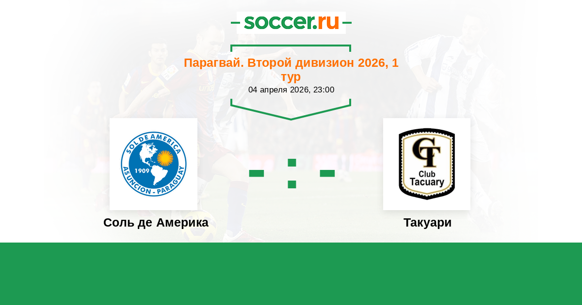 Парагвай. Второй дивизион 10.05.2025 Такуари Логотип футбольный клуб Такуари (Асунсьон) 1:1 Логотип футбольный клуб Соль де Америка (Асунсьон) Соль де Америка