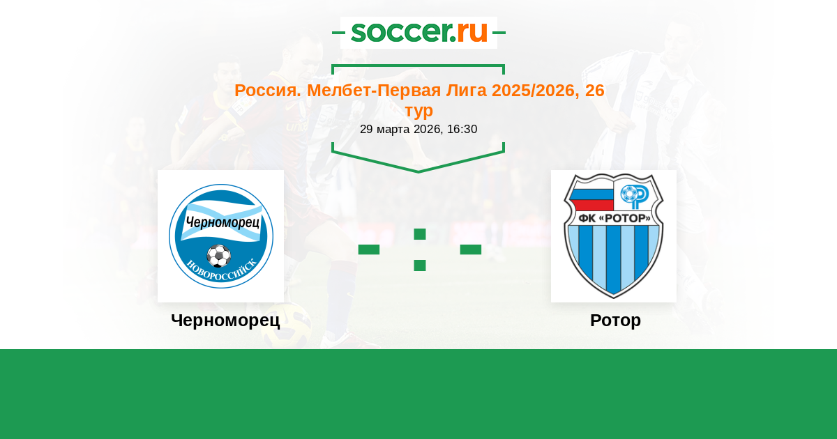 Россия. Первая лига 13.04.2025 Черноморец Логотип футбольный клуб Черноморец (Новороссийск) 1:1 Логотип футбольный клуб Ротор (Волгоград) Ротор