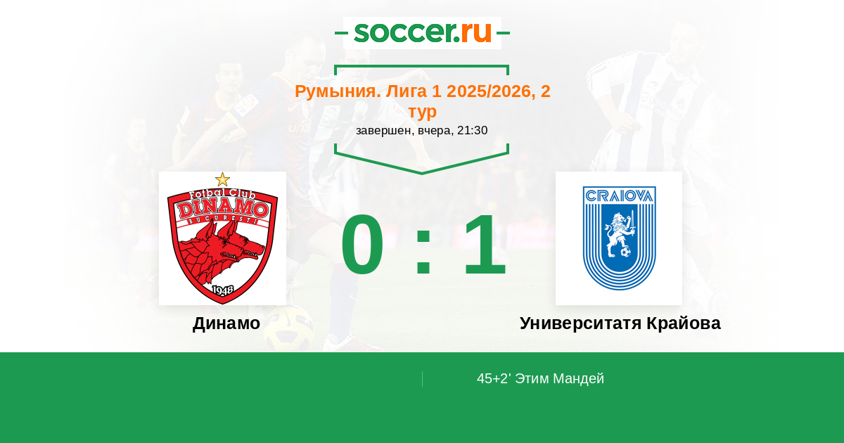 Протокол матча Динамо против Университатя Крайова