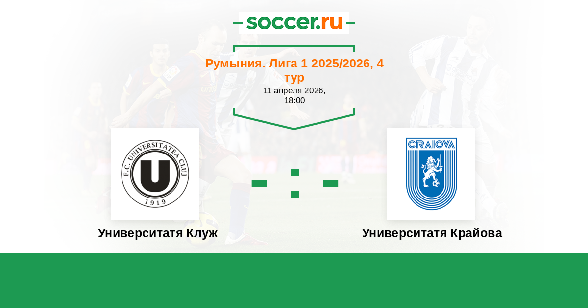 Румыния. Лига 1 28.07.2025 Университатя Крайова Логотип футбольный клуб Университатя Крайова 2:1 Логотип футбольный клуб Университатя Клуж Университатя Клуж