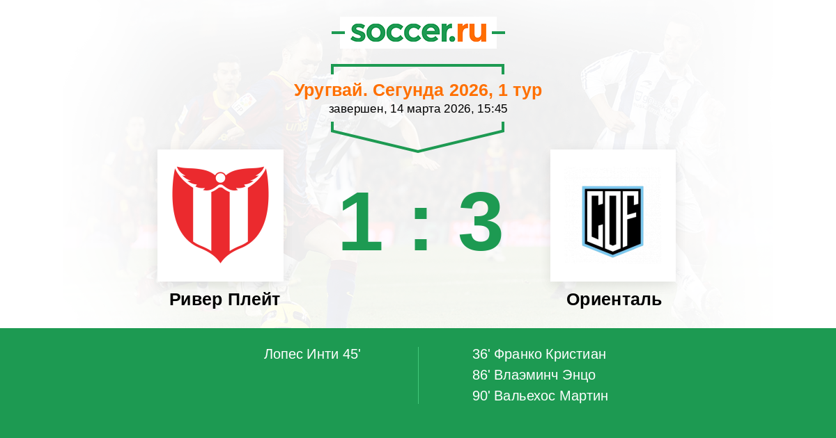 Протокол матча Ривер Плейт против Ориенталь