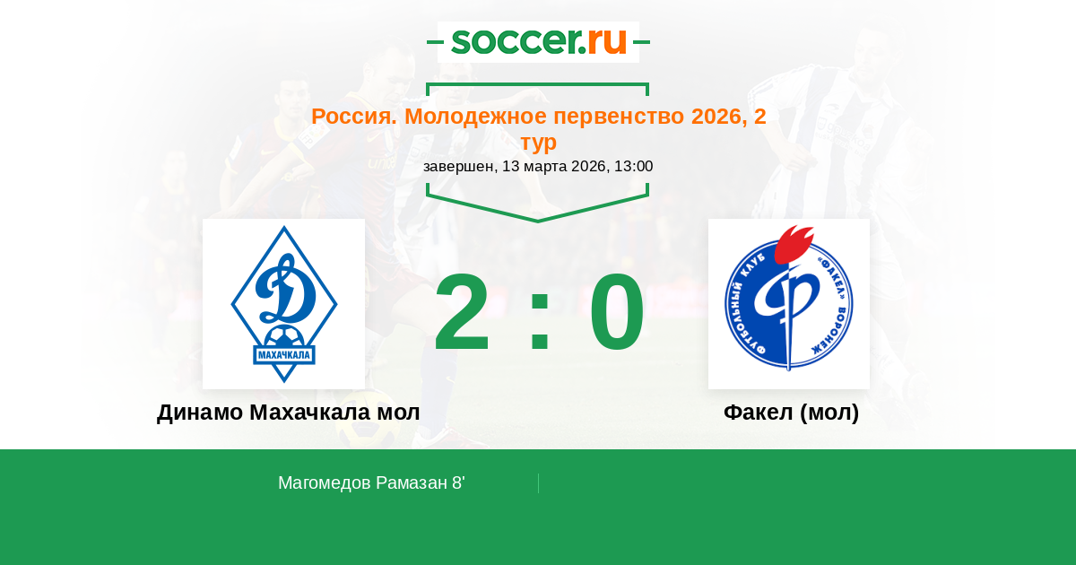 Протокол матча Динамо Махачкала мол против Факел (мол)