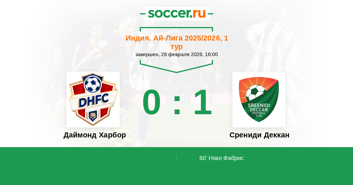 Протокол матча Даймонд Харбор против Срениди Деккан