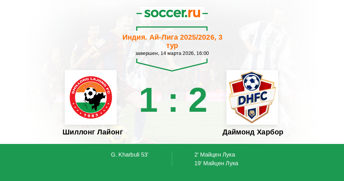 Протокол матча Шиллонг Лайонг против Даймонд Харбор