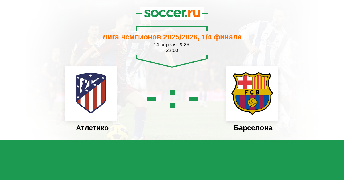 Лига чемпионов 13.04.2016 Атлетико Логотип футбольный клуб Атлетико (Мадрид) 2:0 Логотип футбольный клуб Барселона Барселона