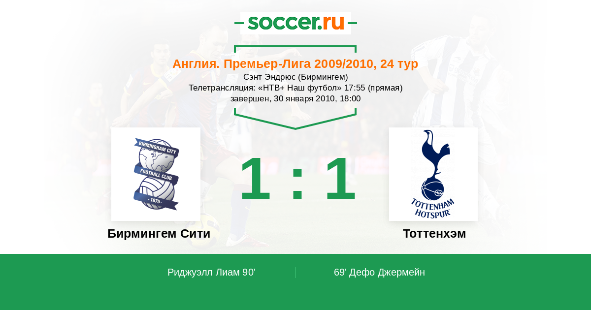 Протокол матча Бирмингем Сити против Тоттенхэм