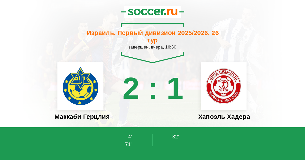 Протокол матча Маккаби Герцлия против Хапоэль Хадера