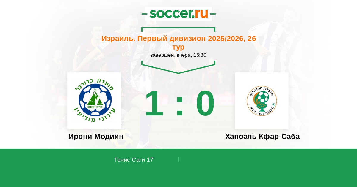 Протокол матча Ирони Модиин против Хапоэль Кфар-Саба