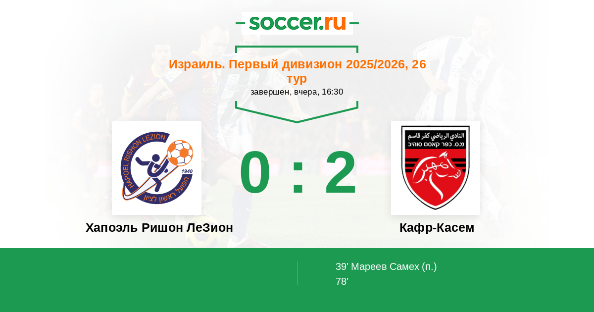 Протокол матча Хапоэль Ришон ЛеЗион против Кафр-Касем
