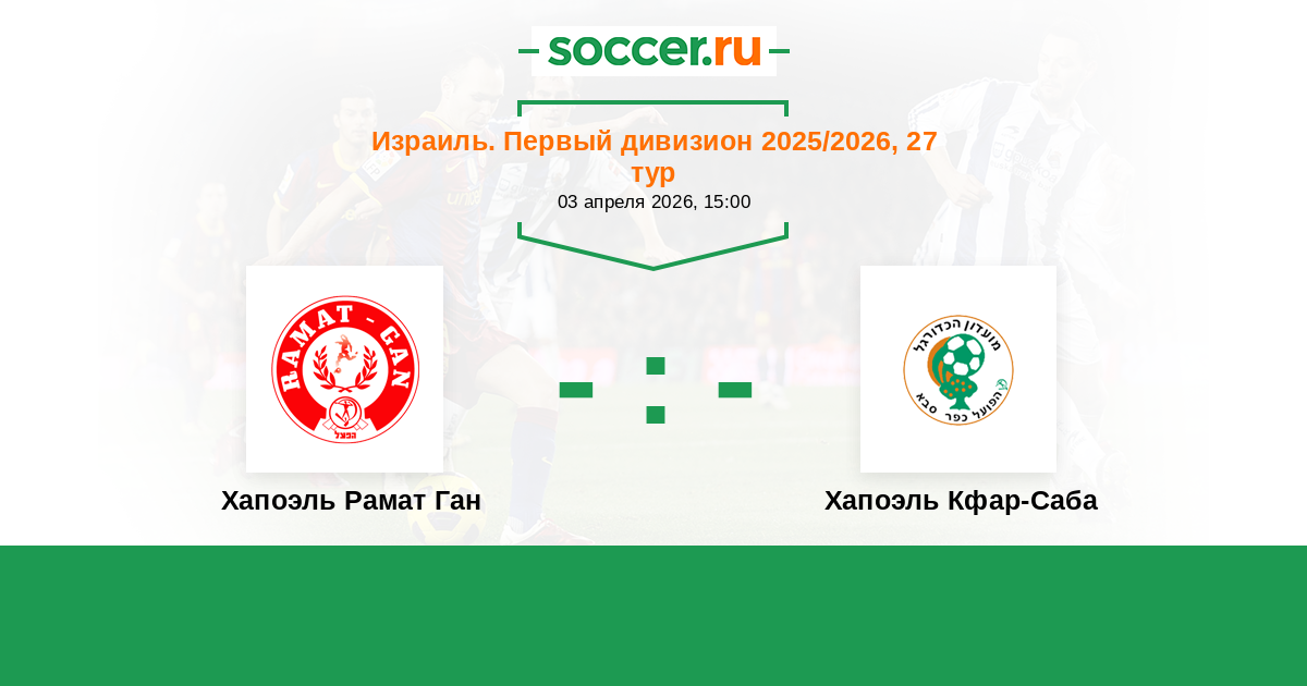 Израиль. Первый дивизион 21.04.2025 Хапоэль Рамат Ган Логотип футбольный клуб Хапоэль Рамат Ган 4:2 Логотип футбольный клуб Хапоэль Кфар-Саба Хапоэль Кфар-Саба