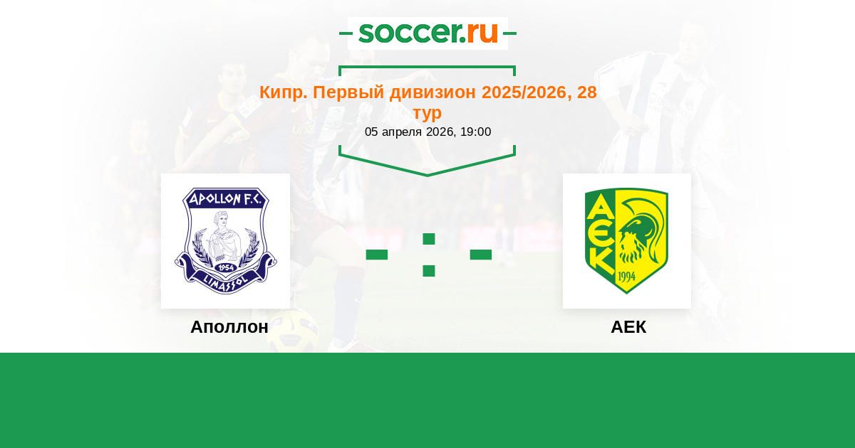 Кипр. Первый Дивизион 06.04.2025 Аполлон Логотип футбольный клуб Аполлон (Лимассол) 1:1 Логотип футбольный клуб АЕК (Ларнака) АЕК
