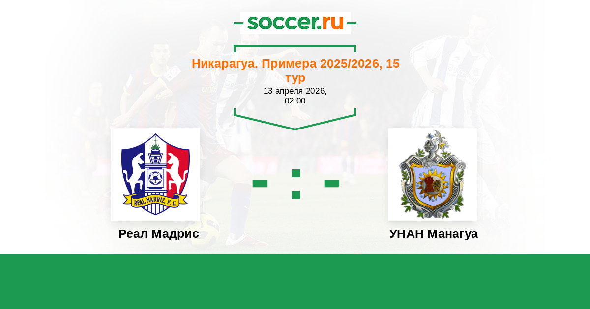 Никарагуа. Примера 08.04.2022 УНАН Манагуа Логотип футбольный клуб УНАН Манагуа 3:1 Логотип футбольный клуб Реал Мадрис (Сомото) Реал Мадрис