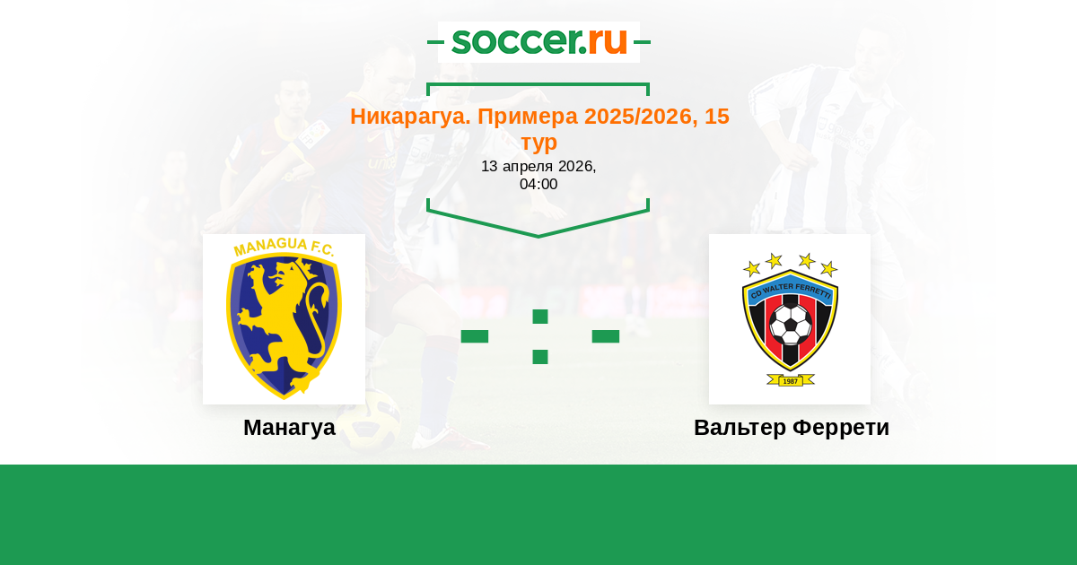 Никарагуа. Примера 24.02.2025 Манагуа Логотип футбольный клуб Манагуа 2:0 Логотип футбольный клуб Вальтер Феррети (Манагуа) Вальтер Феррети