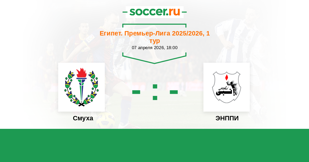Египет. Премьер-Лига 29.01.2026 ЭНППИ Логотип футбольный клуб ЭНППИ (Каир) 1:2 Логотип футбольный клуб Смуха (Александрия) Смуха