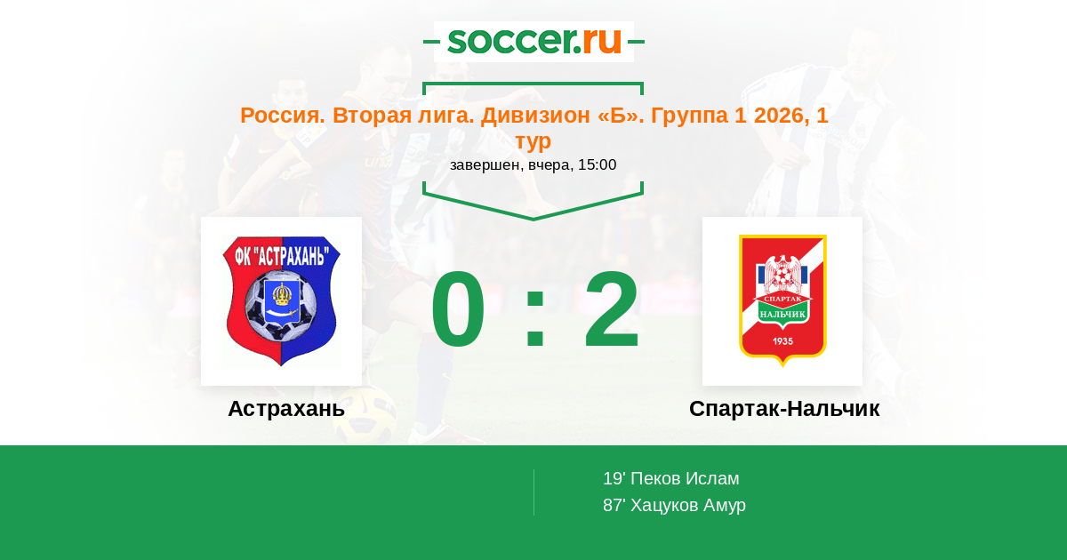 Протокол матча Астрахань против Спартак-Нальчик
