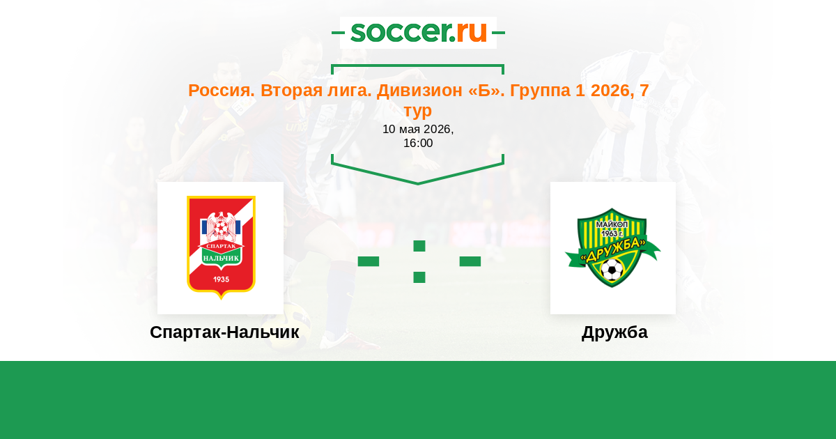 Россия. Вторая лига. Дивизион «Б». Группа 1 29.06.2025 Спартак-Нальчик Логотип футбольный клуб Спартак-Нальчик 0:1 Логотип футбольный клуб Дружба (Майкоп) Дружба