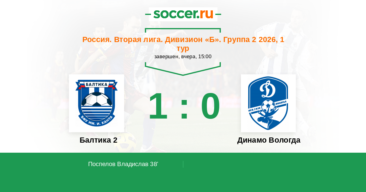 Протокол матча Балтика 2 против Динамо Вологда