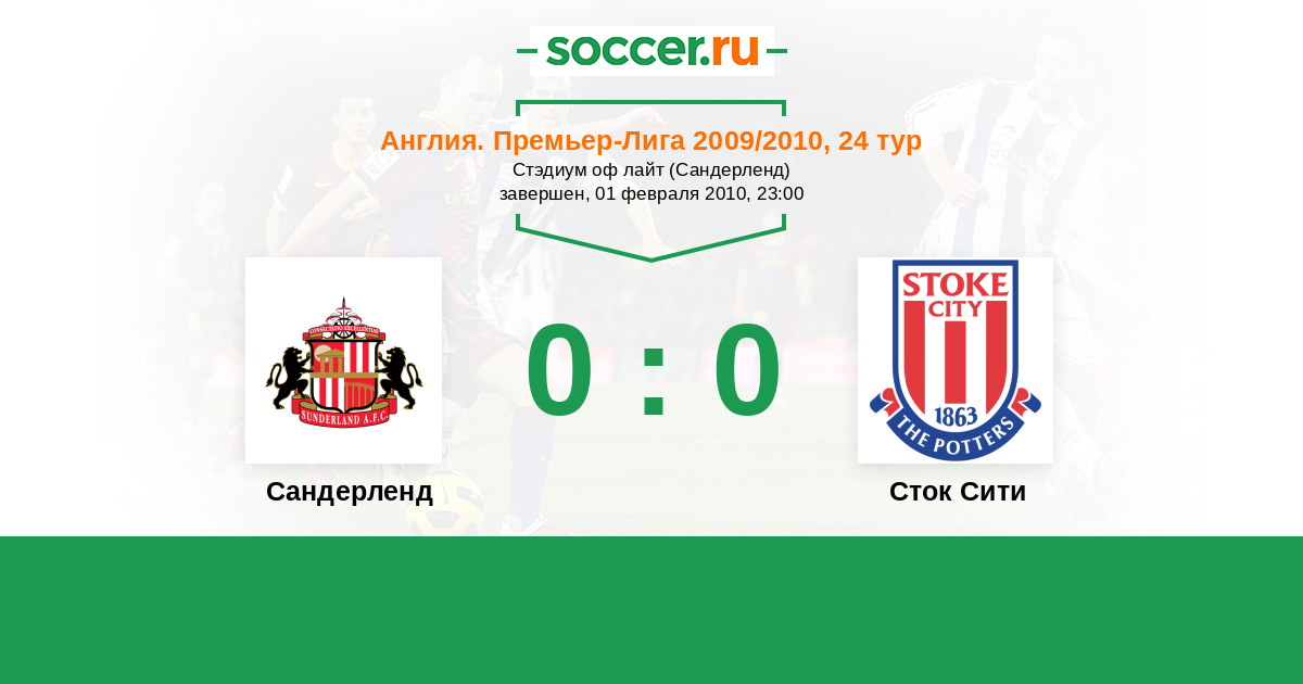 Протокол матча Сандерленд против Сток Сити