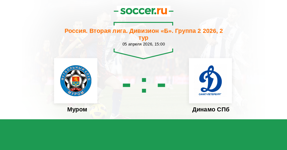 Россия. Вторая лига. Группа 2 06.05.2022 Муром Логотип футбольный клуб Муром 3:2 Логотип футбольный клуб Динамо СПб (Санкт-Петербург) Динамо СПб