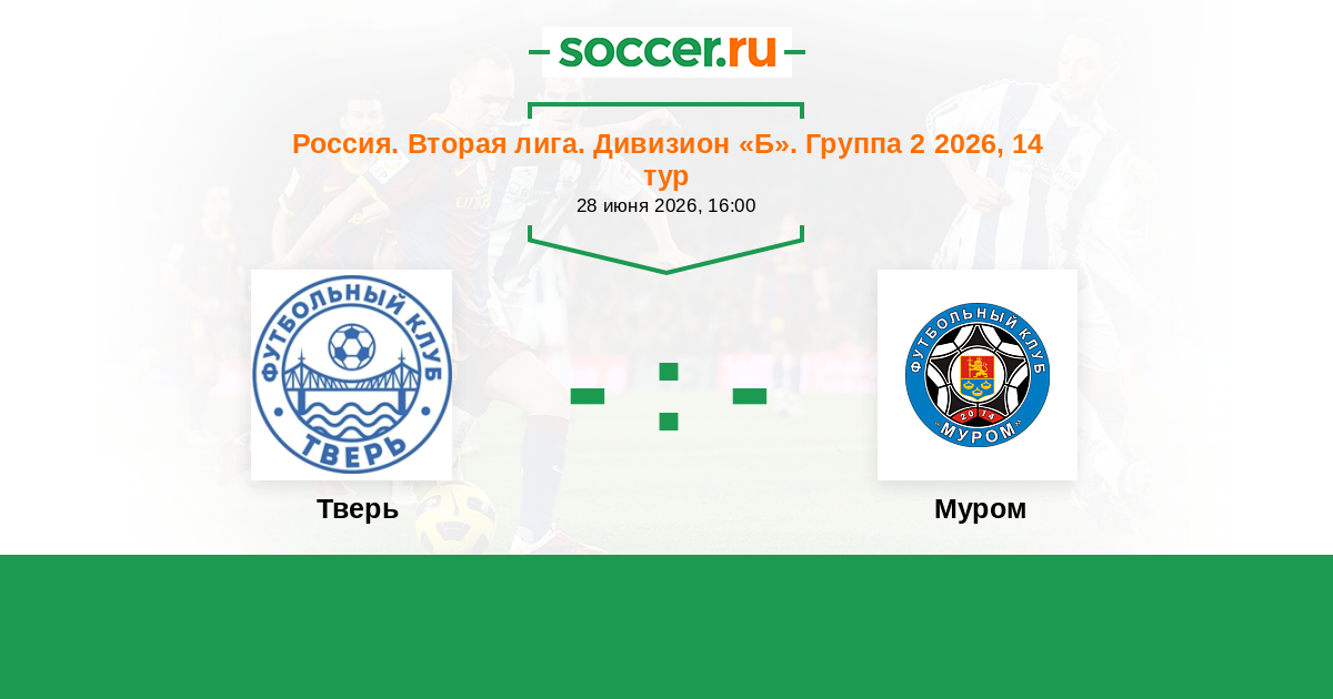 Россия. Вторая лига. Группа 2 28.05.2022 Муром Логотип футбольный клуб Муром 2:0 Логотип футбольный клуб Тверь Тверь