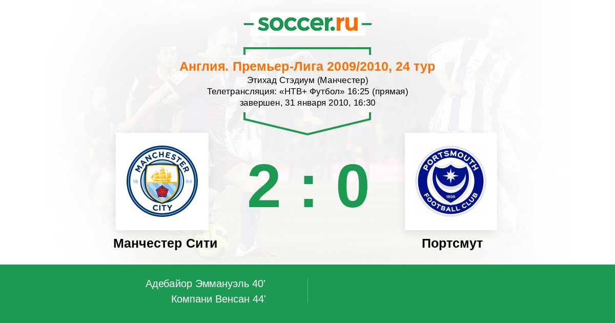 40' (1:0) Адебайор Эммануэль (25) (Айрленд Стивен (7))