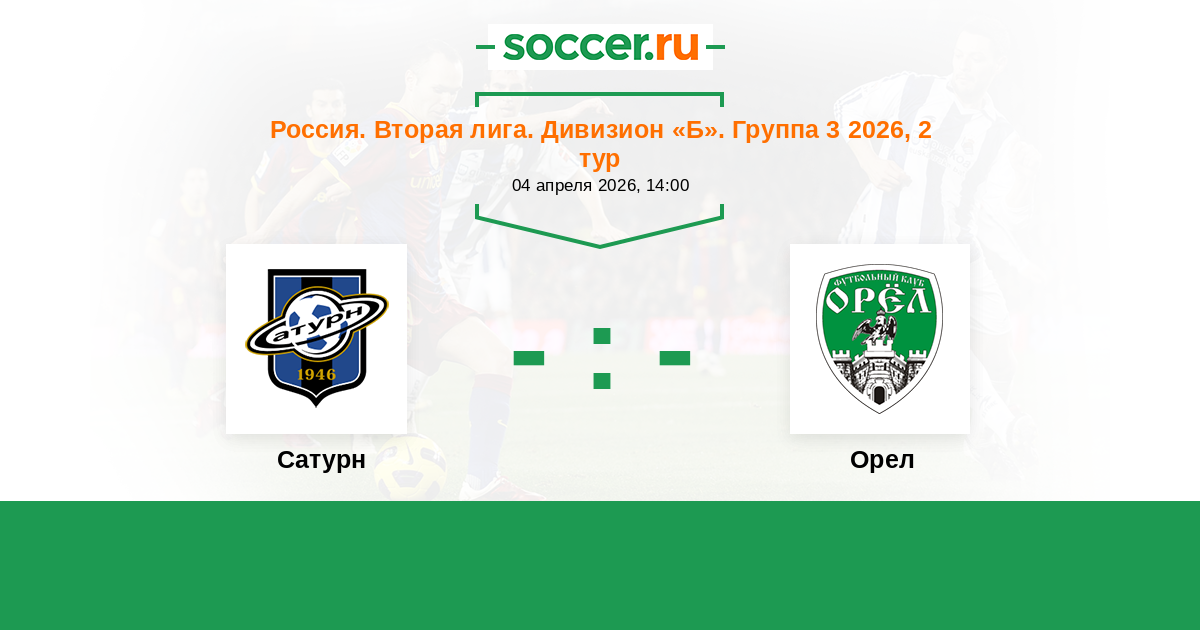 Россия. Вторая лига. Группа 3 18.08.2016 Орел Логотип футбольный клуб Орел 1:0 Логотип футбольный клуб Сатурн (Раменское) Сатурн