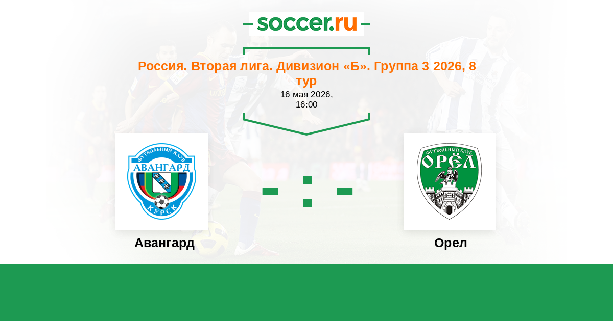 Россия. Вторая лига. Группа 3 25.08.2016 Авангард Логотип футбольный клуб Авангард (Курск) 0:0 Логотип футбольный клуб Орел Орел